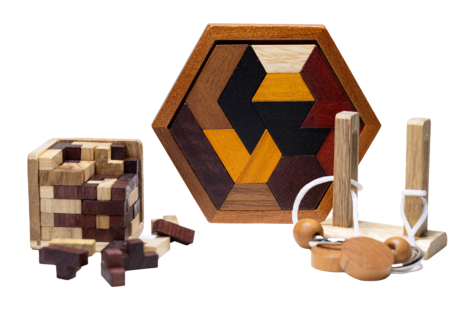 Dette er en gåte forkledd som boks. Blant brikkene skjuler det seg en mekanisme som bare lar seg åpne hvis alt står helt riktig. Når du først har knekt koden, kan du justere vanskelighetsgraden selv. Lekende lett. Eller skikkelig vrien.