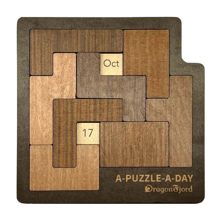 En kalender du må løse. Åtte brikker, én riktig dato, hver dag. Litt hjernetrim, litt mestring og en god start på dagen.